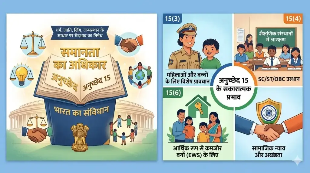 अनुच्छेद 15 भारतीय लोकतंत्र की नींव है। यह सुनिश्चित करता है कि “विविधता में एकता” सिर्फ एक नारा न हो, बल्कि वंचित वर्गों को आगे बढ़ने के लिए ‘समान धरातल’ भी प्रदान करता है।