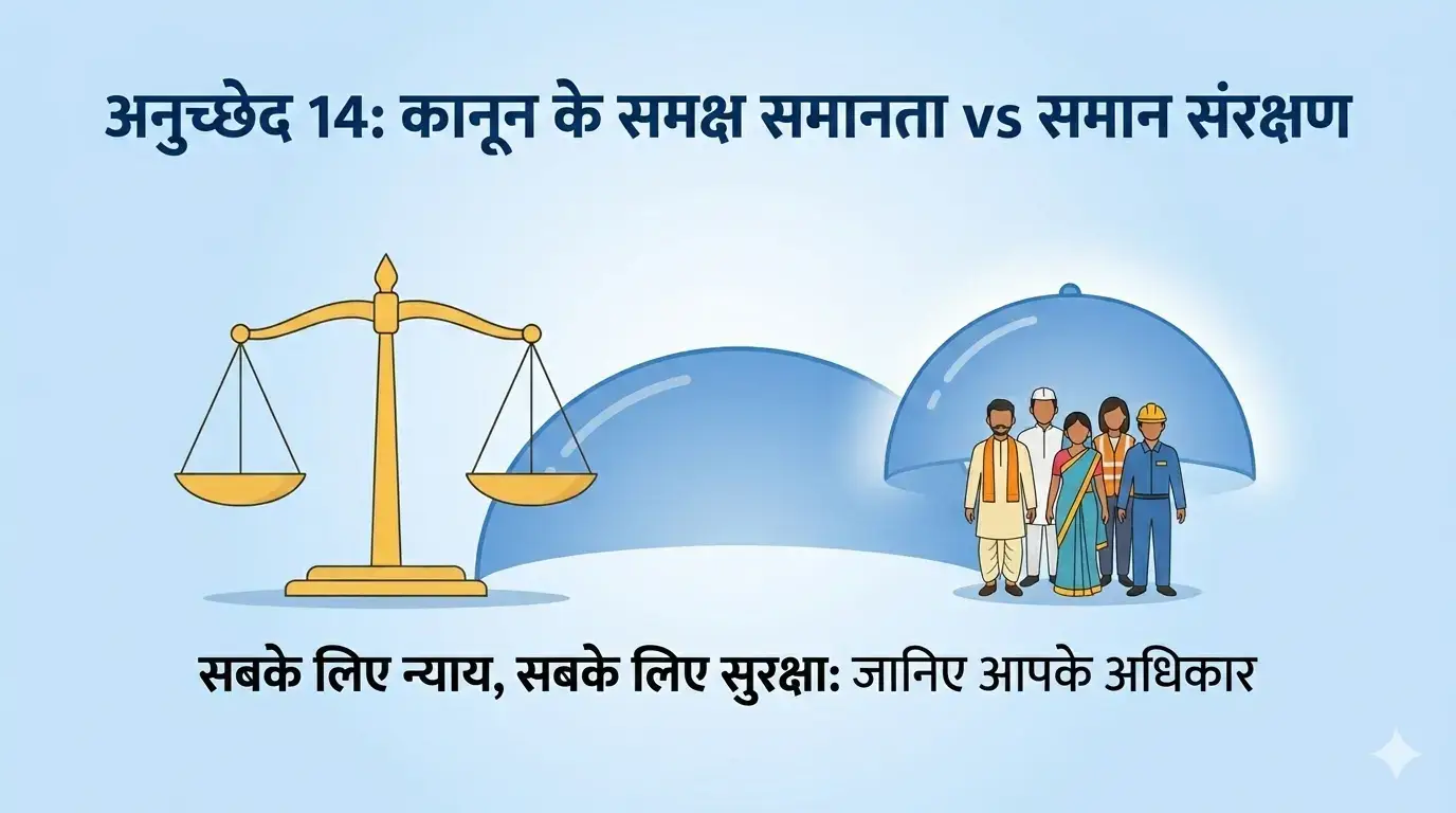 अनुच्छेद 14 क्या है? जानें समानता का अधिकार, भारतीय संविधान के इस महत्वपूर्ण अनुच्छेद की पूरी जानकारी, विशेषताएँ और महत्व हिंदी में।